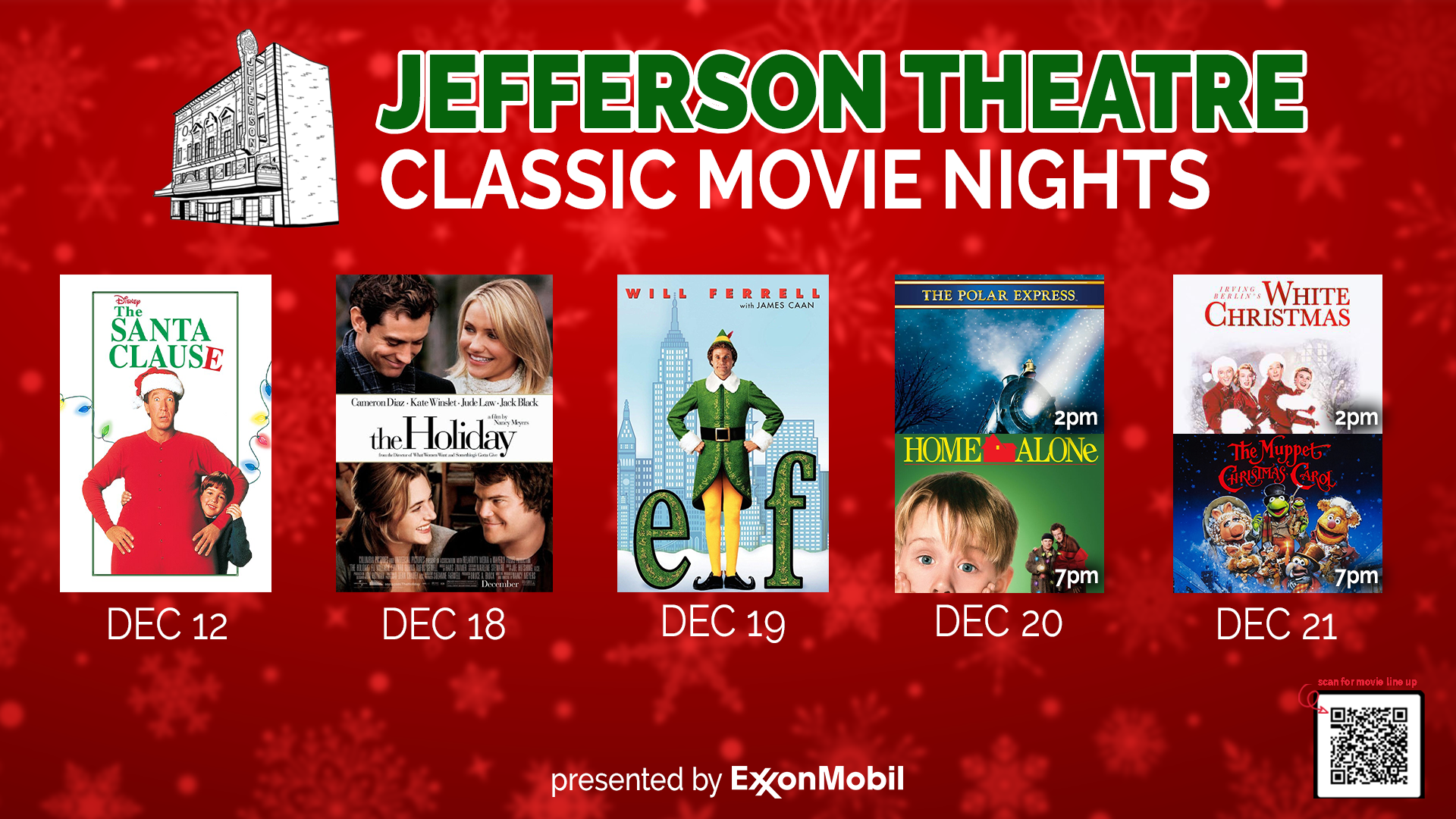 Jefferson Theatre 345 Fannin, Beaumont, TXJingles and Jolly, the cheerful elf duo from Jack and Jill Storybook, will be in the Jefferson Theatre lobby from 6:00pm to 7:00pm for photos. Doors 6pm Film 7pm Tickets can be purchased ahead of time at the Beaumont Civic Center box office or online now at the buy tickets link below. If tickets are still [...]